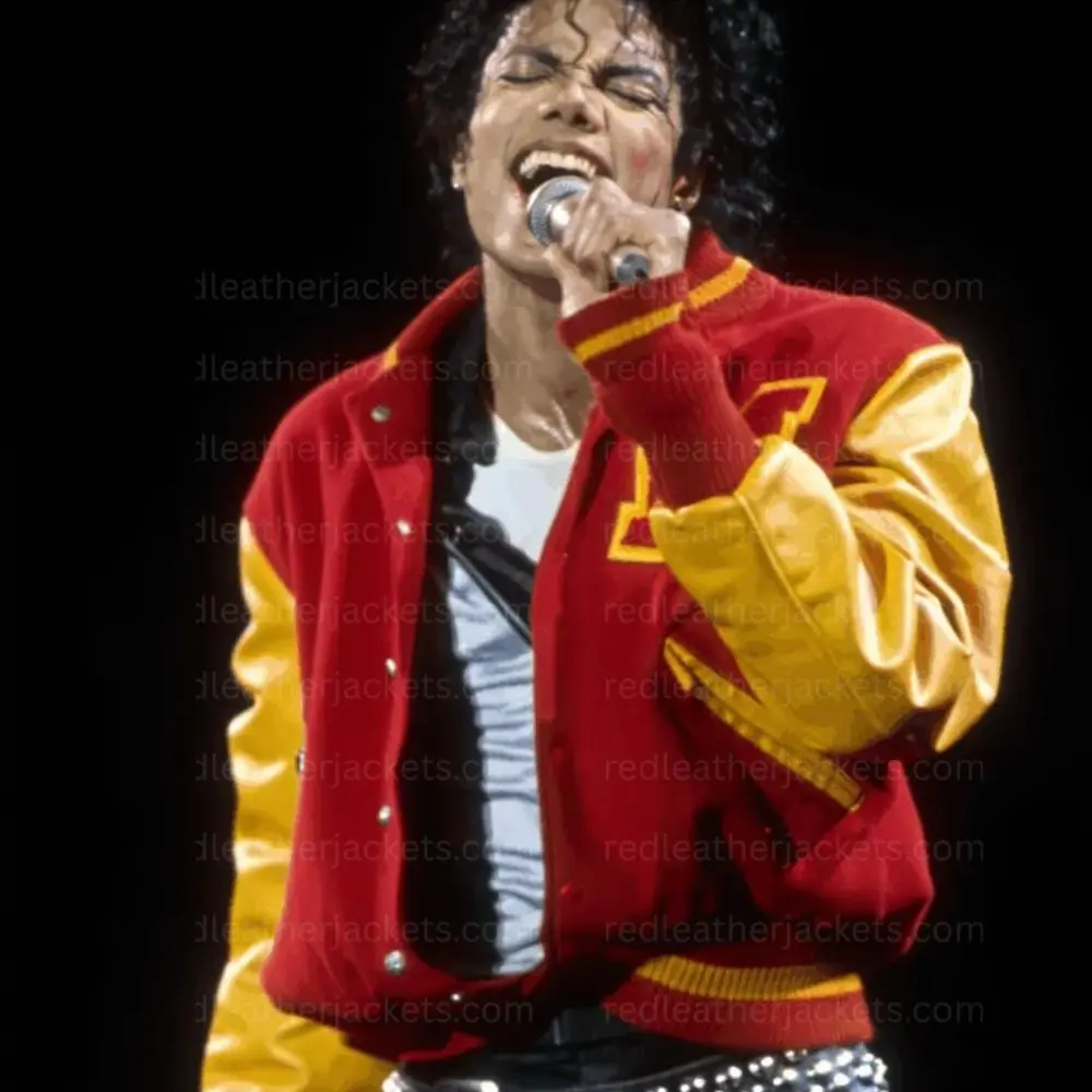Elevate your style with the Thriller Michael Jackson Red and Yellow Varsity Jacket which is a classic piece that was inspired by the great Thriller album. This iconic jacket is for die hard fans of the King of Pop and for the fashion connoisseur that goes for classic celebrity inspired pieces. Made with premium materials & attention detail this jacket gives to life the bold and unforgettable look that Michael Jackson made famous.